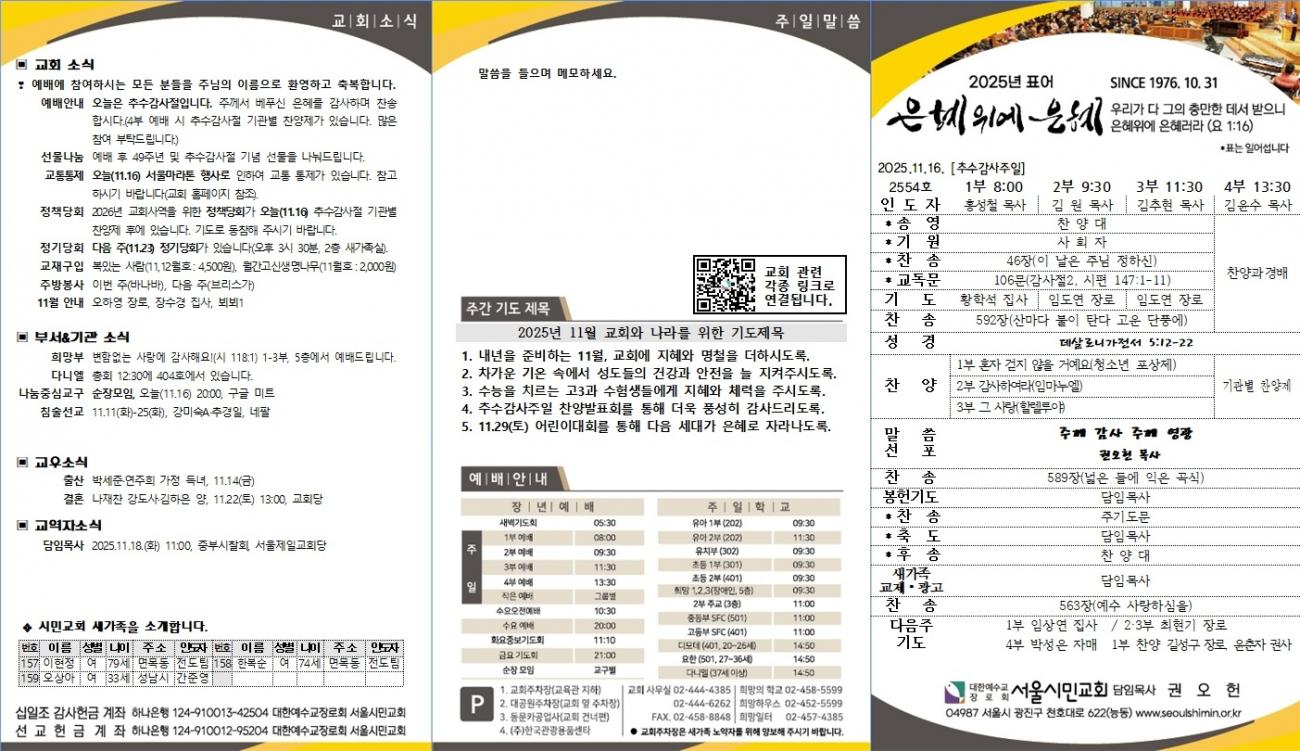 2025. 11. 16 주보 > 주보 | 서울시민교회