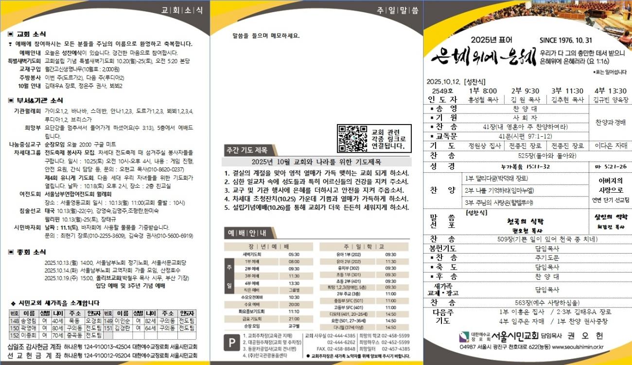 2025. 10. 12 주보 > 주보 | 서울시민교회