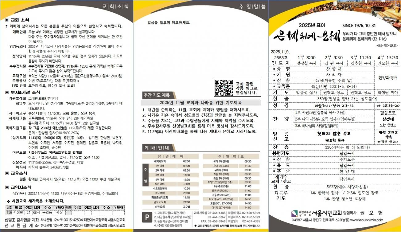 2025. 11. 9 주보 > 주보 | 서울시민교회