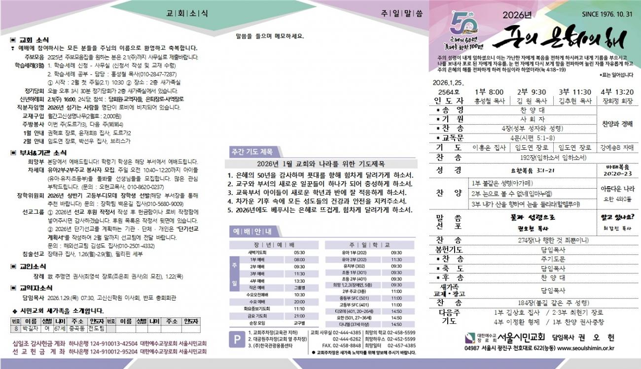 2026. 1. 25 주보 > 주보 | 서울시민교회