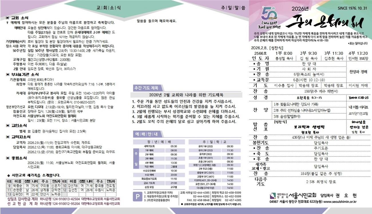 2026. 2. 8 주보 > 주보 | 서울시민교회