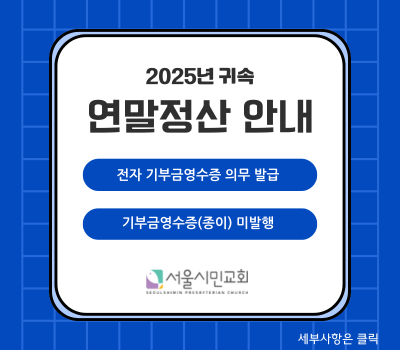 십일조/감사헌금: 하나 124-910013-42504 | 선교헌금: 하나 124-910012-95204 (대한예수교장로회 서울시민교회)